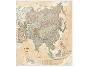 This map of the Asian continent combines two maps in one—a vivid political map of Asia showing all of the countries and major cities as well as a colorful topographic physical map depicting all of the major physical features in Asia, including a cross-continent elevation profile. The political map includes a call-out box with interesting facts about the continent. The map also includes all 49 flags of each Asian country.